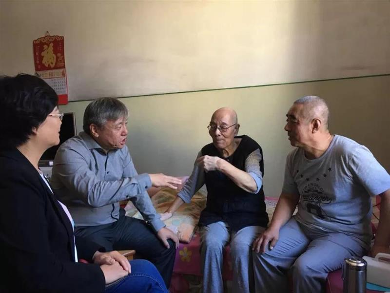 张希英老校长虽已九十五高龄,但精神矍铄,对学校校长书记的到来非常高兴,与孙校长和符书记愉快亲切的交谈。校领导询问老校长的生活、身体等情况,感谢老校长长期以来为学校发展做出的贡献,叮嘱他保重身体。老校长深情回忆当初在学校的奋斗岁月,回忆当年学校的感人的师生故事,也关心着学校现在的发展,看到学校新的发展变化感到由衷的欣慰。