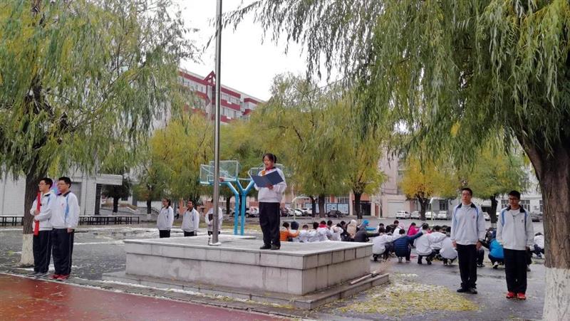 我身后是高二二班全体同学,他们共同用身体摆成了一个“俭”字,呼吁大家勤俭节约,共创节约校园!让我们相信:“勤俭之美——让青春更美!”