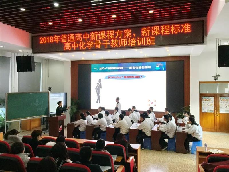 12月6日,“2018年全省普通高中新课程方案、新课程标准高中化学骨干教师培训”在我校举行,我校孙景峰校长、符丽萍书记应邀出席培训班的开幕式并讲话。开幕式及培训会由省教研员许虹宇老师主持,省教育学院郭颢主任出席开幕式并讲话,教研员曹亚风老师、赵淑梅老师出席开幕式。 孙校长做讲座 孙景峰校长首先应邀为来自全省各地的教研员、骨干教师进行了培训讲座。孙校长重点阐述了如何从培养目标、办学理念、办学目标等学校顶层设计出发进行课堂实践和课程建设,介绍了我校课程开发的经验和实例,并用详实的案例分析阐述了我们的课堂教学理念和“问题化学习+pad教学”的探索成果,还分享了我校中加实验班的课程开发和综合素质评价经验。 讲座结束后,由6位老师带来8节精彩的现场课、说播课展示。我校张平老师进行了示范课展示,随后又进行了说播课展示和介绍。孙博文老师进行了说课展示。