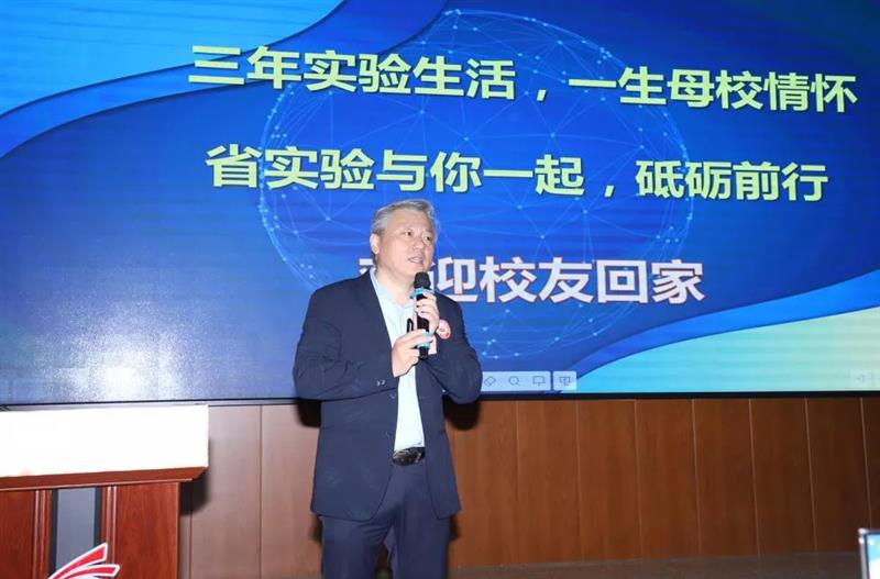 逐梦三十年 真情永相伴 校友们组织举办“逐梦三十年 真情永相伴”的隆重庆典,敞开心扉,畅所欲言,尽情尽兴,忆几十年前的同窗趣事,叙那些年生活的酸甜苦辣,谈如今的辛福生活。 老校长朱梅亭讲话,年逾古稀的老校长,身上永远是教育人的淳朴与正气,他表示欣慰于校友们的发展,感动于校友对母校的深情,看到老铁一的教育对校友们深刻的影响,是他作为教育人的成就与荣耀。 不忘初心,一起前行 铁打的校园,流水的学生。省实验校园见证了一代又一代人的薪火相传,校友们也以实际行动践行着铁一精神,实验精神,成就着这里的荣光。学校也将继续丰富校友活动,继续汇聚校友力量,不忘初心,一起前行。母校永远欢迎校友回家!无论走到天涯海角,你都是实验(铁一)人!