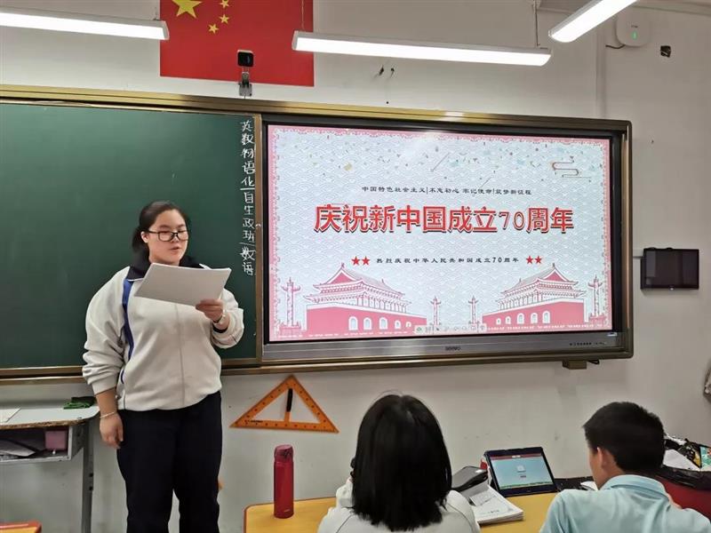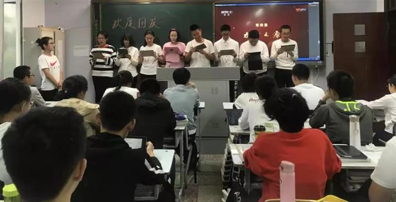 9月30日,高一、高二学年第九节课统一召开了“庆祝中华人民共和国成立70周年”主题团会,各班通过观看视频、回顾历史、诗歌朗诵、爱国演讲等多种方式带领学生畅游我们国家这70年发展的历史长河,进一步深刻了解一代代中华儿女勤劳勇敢的精神和奋斗不息的行动,了解祖国这一路走来所发生的变化。看到我们的祖国一次又一次刷新着世界对中国的认识,登顶世界民族之林,看到昨天女排以11连胜为十一献礼,同学们的自豪感油然而生,同时也更清楚自己肩上的责任与重担。他们会把自己的未来与祖国的未来联系在一起,用更积极主动的学习不断磨炼自己的意志,提升自己的能力,为实现我们的中国梦而奋斗。