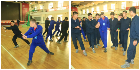 体育课 汉语作为俄罗斯学生的必修课,每位同学都能来上几句呢, 授课老师们用临时学的俄语打招呼表示欢迎,也让俄罗斯师生感到惊喜,课堂上演练与讲解结合,学生展示加分组练习,同学们快速地学习模仿起来;汪新妍老师还对其中的攻防含义进行了详细的讲解,同学们了解后连连称赞。 通过一堂课的时间,掌握一些基本的太极拳动作,产生学习的兴趣和进一步了解的欲望,更在与中国同学共同学习的过程中加深情感交流。