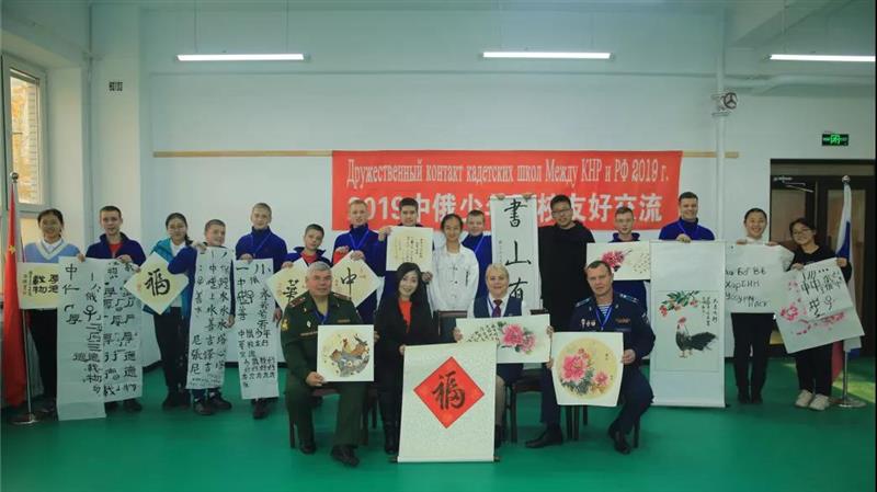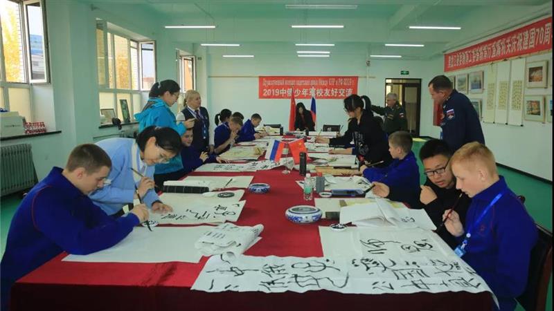 美术课 到中国体验一把中国传统书法绘画,美术老师王玉霞老师早就备好宣纸毛笔和墨汁,教俄罗斯同学体验汉字一笔一划的含义,方正结构圆润笔触的魅力,中国画的意境,每个人都在老师指导下完成一幅书画作品,留作珍贵的纪念。