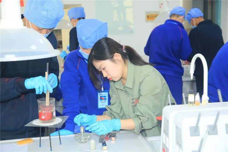 化学课 省实验爆款实验课——口红的制作 前期5位热情的海航学子通过收集资料,提前计算出了制作过程中原材料的最佳配比,为俄罗斯小伙伴们的动手实践打下基础。 同学们在老师指导下,用色粉,植物油,白蜂蜡,小烛树蜡,维生素E ,精油以及抗氧化剂等化学原材料,通过精确的计算和耐心的研磨、搅拌、溶解、冷却等步骤,最后制作出颜色、形状、质感都很成功的口红来。 军校的男生做起口红来也有一种反差萌呢 这些省实验出品的自制口红也作为小礼物送给了俄罗斯同学随其返航。