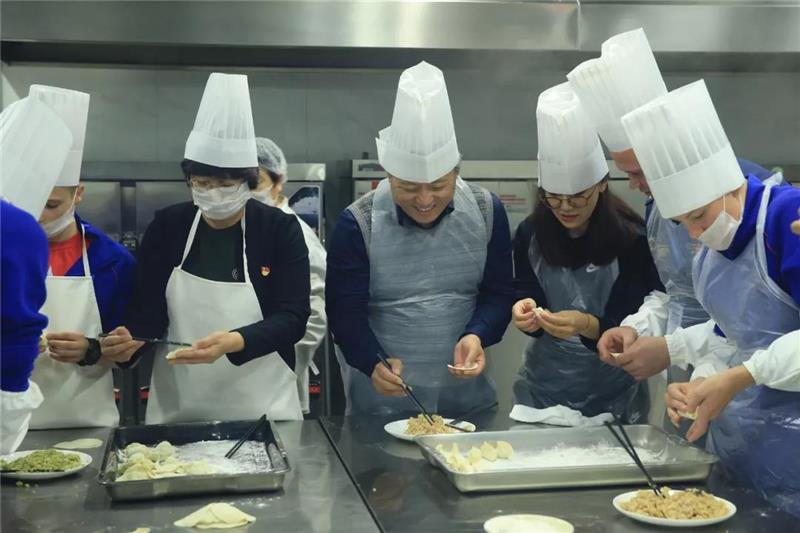 来哈尔滨当然还要学习——包饺子啦 食堂厨师和校领导亲自授课,课堂作品直接当晚餐——题外话,据说这些俄罗斯的同学们这几天学到最多的词就是锅包肉啦,炖菜啦,饺子啦……之类的词汇啦,果然中国美食是王道! 符丽萍书记在欢送会上说,同学们这几天还感受了中国传统文化,学习包饺子,体验中国书画和绘画等,但我还想要告诉老师和同学们,中国的文化和特色不只有饺子、书法、太极拳,我们还有现代化的场馆,无处不在的移动支付,深入生活的智能设备,有世界上最快的高铁,最大的机场,最长的跨海大桥,以及先进的载人航天飞船,希望这次的交流能成为大家从各个角度深入了解中国的一个起点,希望大家能再来中国,让中国在大家眼里更丰富和立体和真实。 最熟悉的陌生“城” 哈尔滨与俄罗斯的渊源颇深,来到哈尔滨的俄罗斯师生对这个城市都会有强烈熟悉感,教堂,穹顶建筑,铁路桥,中央大街的道路,街市上的的俄罗斯风格小商品……虽然是初次到中国的城市,却能处处感受到俄罗斯的风格,寻找到俄罗斯人生活的痕迹,俄罗斯文化融入中国本土文化中,造就了今天的哈尔滨。我们希望中国的文化也通过一批批前来交流访问或旅游的朋友带回俄罗斯,文化的交流和融合必将碰撞出更多灵感与火花,创造出更美的艺术。