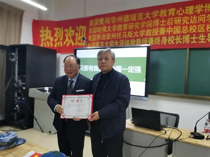 黄天中教授 ● 中国华侨大学校董、教授、博士生导师、生涯规划研究所所长 ● 美国乔治亚州托马斯大学教授、中国总校区校长 ● 美国纽约州库克大学教授、中国总校区名誉终身校长 ● 体验式全程生涯教育工作室终身志工 ● 受聘国内17所大学的客座教授或兼职教授, ● 创建了中国第一所“临终关怀研究中心”, ● 创建了中国的第一个美国MBA, ● 从事教育半个多世纪,不遗余力地为中国的高等教育介绍并引进西方先进的教育成果,开展中美合作办学项目,见证中国高等教育的崛起。 ● 担任策划主讲之“职业生涯规划—体验式学习”课程获列中国教育部首批“国家精品在线开放课程”。发表生死学、心理学、生涯教育相关论文90余篇,出版《心理学》《临终关怀》《死亡教育》《生涯规划》从幼儿版到大学版等相关著作30余本。