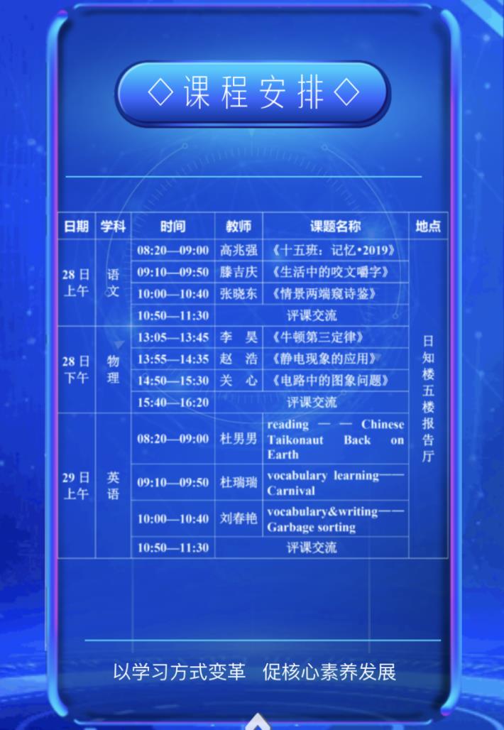 省实验“万朋杯”美师优课教学大赛课表——语文、物理、英语