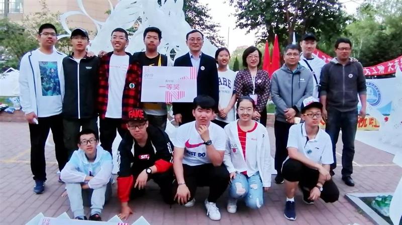 6月2日,在哈尔滨工业大学举行的第十届哈尔滨工业大学建造节,暨2019“百年芳华”塑料中空板建筑设计与建造竞赛中,由我校高一学年11名同学组成的代表队所创作的作品,G06组《龙脊》在高中组九支参赛作品中力拔头筹,荣获了唯一的一等奖。指导教师陈醉老师获得优秀指导教师奖。 我们的“龙脊”