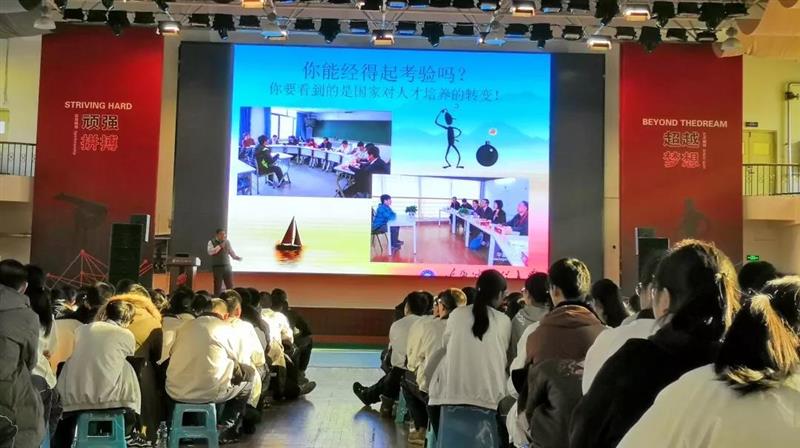 会议最后,学年主任夏喜泉为全体学会做了“自主招生”的专题培训,他从“什么是自主招生”、“为什么要参加自主招生”、“我们适合吗?”、“如何准备?”的等角度为学生做了深入浅出的解读,鼓励学生从利用这个假期开始自己的准备,期待一年后的今天,每个同学都会有适合自己的申报角度。