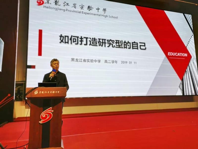 哈尔滨工程大学陈岩教授给高二的全体学生做了关于“如何真正提高自己的核心竞争力”的专题报告。陈岩教授从“已经或正在消失的职业”入手,为学生介绍了如何发现问题到解决问题的科学思维过程,如何进行科学发明与创造。