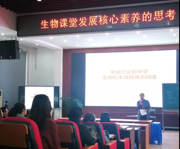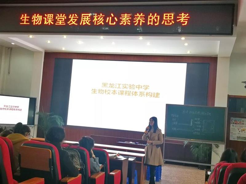 李淑敏老师做了《课堂教学中发展生物核心素养》讲座。李淑敏老师从2018年高考试题入手分析核心素养的考查,再谈到平常的课堂教学如何发展核心素养,最后谈到教师要有自我学习意识,努力开展好校本课程,提升学生的科学探究能力和社会责任意识! 十二中科研主任王志强老师对王海云老师课堂的高效性给了很高的评价,表示希望大家共同学习、研究生物新课标的落实和生物的核心素养的达成。 哈市高中生物教研员王亚芬老师进行专业的点评,认为本节课符合核心素养,落实了课程理念,从引导学生问题出发,不断产生新问题,就是科学思维的过程。