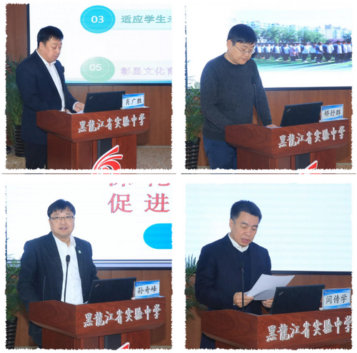 围绕高考综合改革,如何培养学生核心素养?怎样进行学生发展指导?选课走班的要点难点是哪些?改革中需要什么样的信息技术手段支撑?高考综合改革背景下的课堂与我们现在常规的课堂有哪些不同?改革的核心——课堂应该怎样进行?改革将至,学校需要做哪些准备? …………带着这些疑问,全省的高中教育专家学者们在这里交流经验,碰撞思想,展开热烈的研讨。 会上,首先由我省四位知名高中校长进行改革探索经验的典型交流: ??哈尔滨市第一中学肖广胜校长介绍哈一中 “广益达德”课程体系建设的探索; ??齐齐哈尔市第八中学矫抒群校长分享对如何落实核心素养,改革教学方式的实践; ??牡丹江市第一高级中学孙奇峰副校长对如何通过深化生涯规划指导,促进育人方式改革进行说明; ??大庆实验中学闫传学校长谈对推进综合素质评价,改革高中育人方式的思考。 我校孙景峰校长进行经验介绍,孙校长围绕高考综合改革的核心特质——选择性,学校应该为学生提供什么课程,怎样指导学生做出选择,改革前我们做了哪些准备和预设,课堂教学的改革实践,信息技术在整个改革中的全面支撑作用等进行分析与说明。
