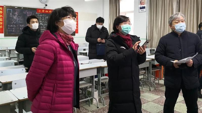 孙景峰校长汇报了学校复学的两大难处:一是交通,二是就餐,同时汇报了针对这些难处的应对方案。交通方面,我校对全校师生往返学校的交通工具进行了详细的调研,提出了上下学、上下班的相关办法和建议;就餐方面也做了充分的预案,一桌一人、盒饭配餐等建设性措施得到了陈远飞副市长的肯定。