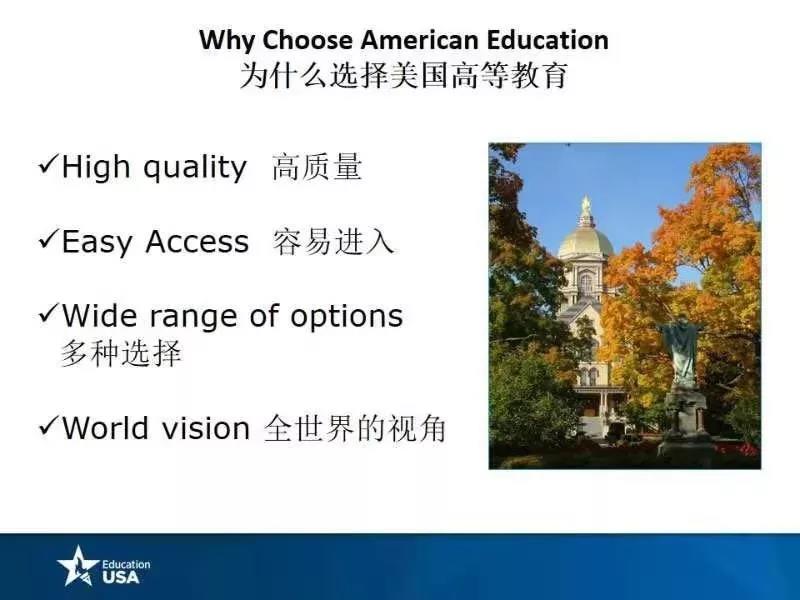 讲座主要内容是美国高等教育资源介绍,介绍了美国高等教育的优势,强调了美国高等教育的高质量和选择的多样性,对批判思维的训练和研究能力的重视等,还介绍了同学们关注的奖学金设置、就业去向等情况,帮助同学们进行留学规划。