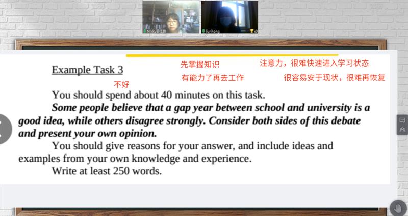 ??以上是学生在classin平台进行在线学习开展小组讨论,进行批判性思维的训练。