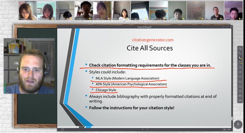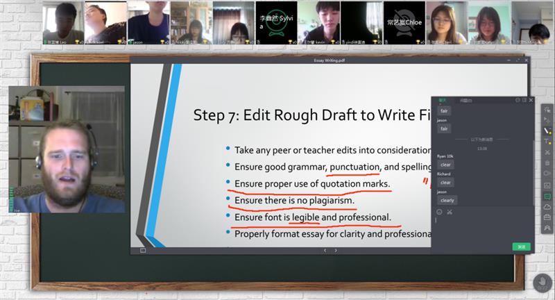 我们在线日常的教学中,同样积极培养学生的批判性思维的能力。并通过外籍教师开展线上学术论文写作讲座。